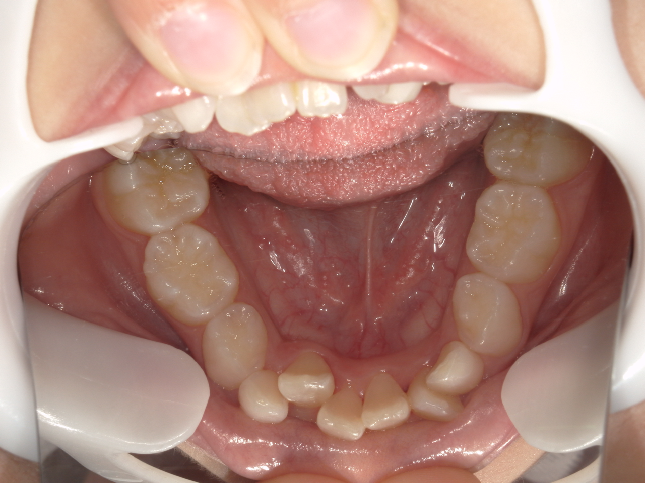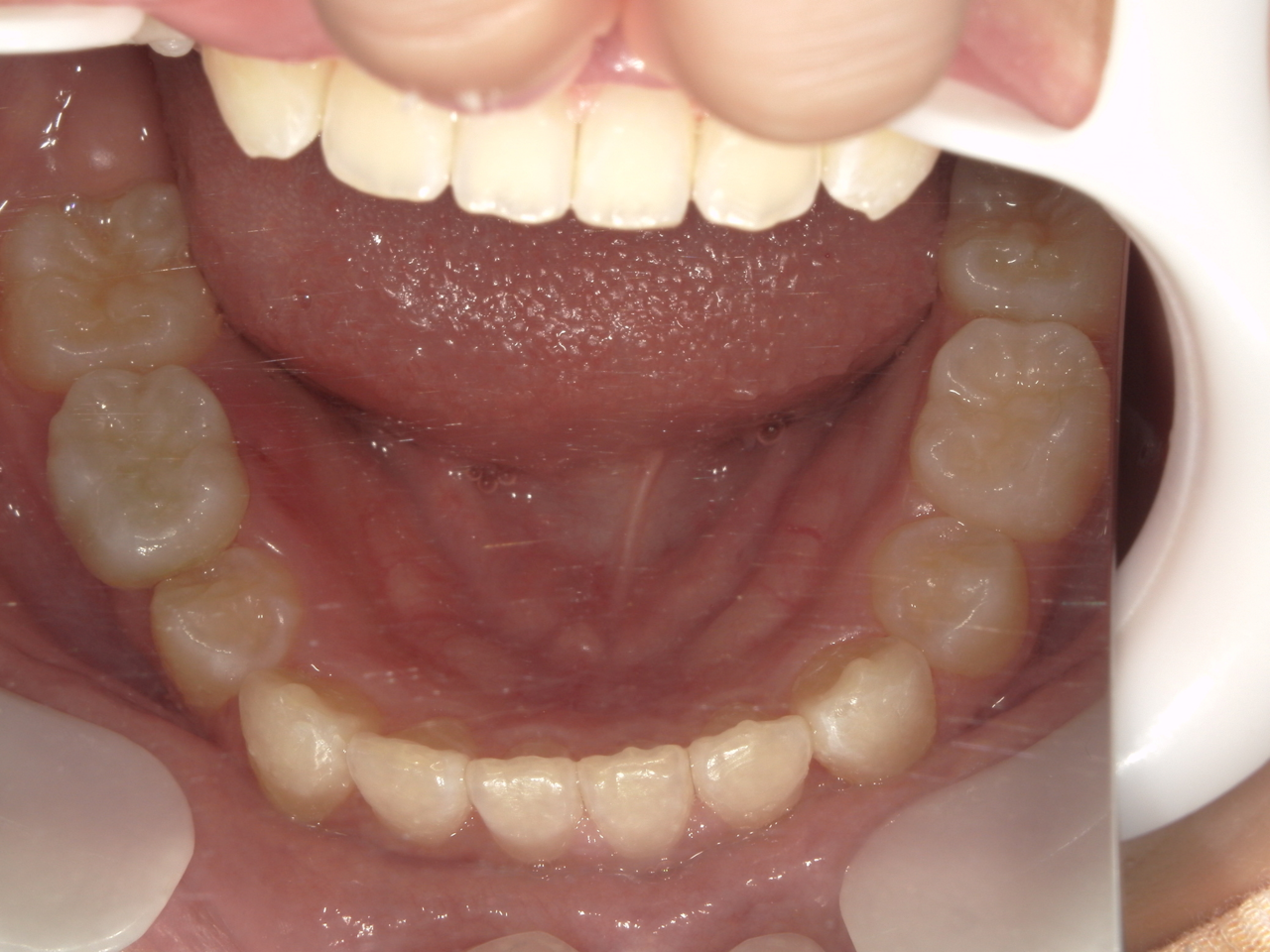 治療の副作用(リスク)歯の動き方には個人差があり、予想された治療期間が延長する可能性があります。。マウスピースの使用状況、矯正歯科治療には患者さんの協力が必要であり、それらが治療結果や治療期間に影響します。混合歯列期のため何度か印象採得する可能性があります。