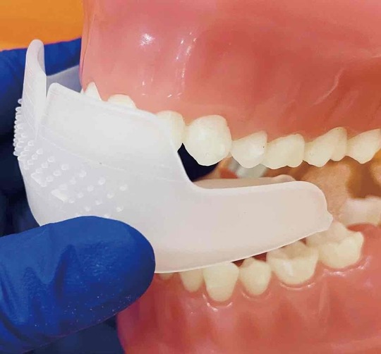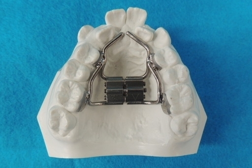 ムーシールドは主に受け口(反対咬合)を改善する矯正装置です。正常なあごの骨の発育や正しい永久歯の生え変わりを助けます。また、舌を正しい位置へ自動的に動かし、歯並びも健康な状態へと導きます。基本的には、寝ているときと日中数時間だけ装着します。