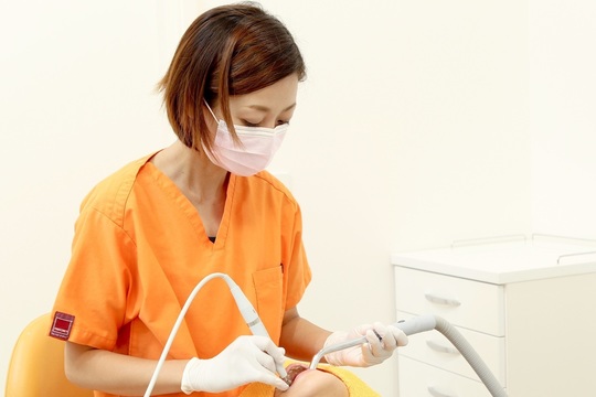 メインテナンスでは、歯のお掃除、歯石・歯垢(プラーク)を取り除く「スケーリング」といった、歯のクリーニングを実施。虫歯と歯周病のチェック、効果的な歯磨き方法や日常の食生活についてのアドバイスなども行っています。お口の状態を見て、ホワイトニングのご提案もできます。